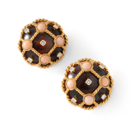• Clips d’oreilles Or Corail Diamants Ecailles de Tortue de la Maison Boucheron
