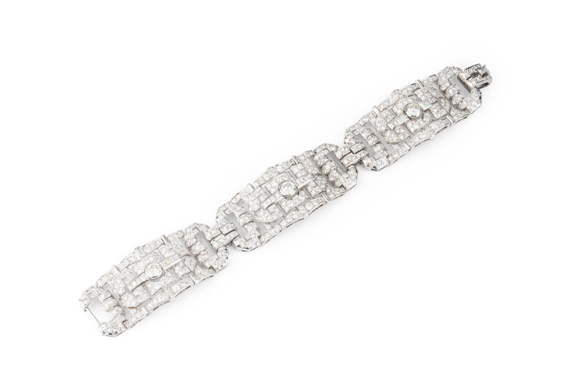 • Bracelet d’ époque art déco platine et diamants brillants et baguettes