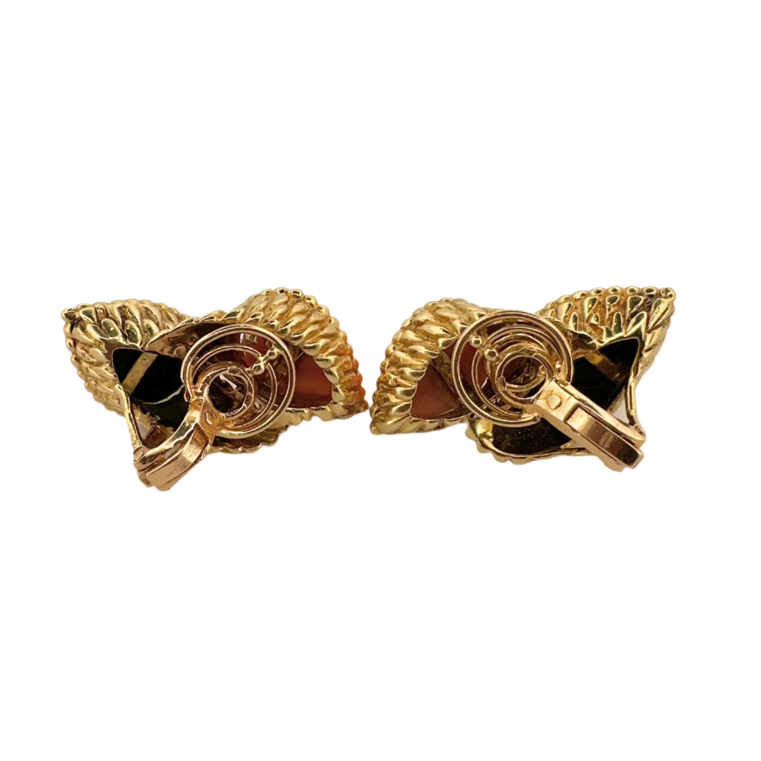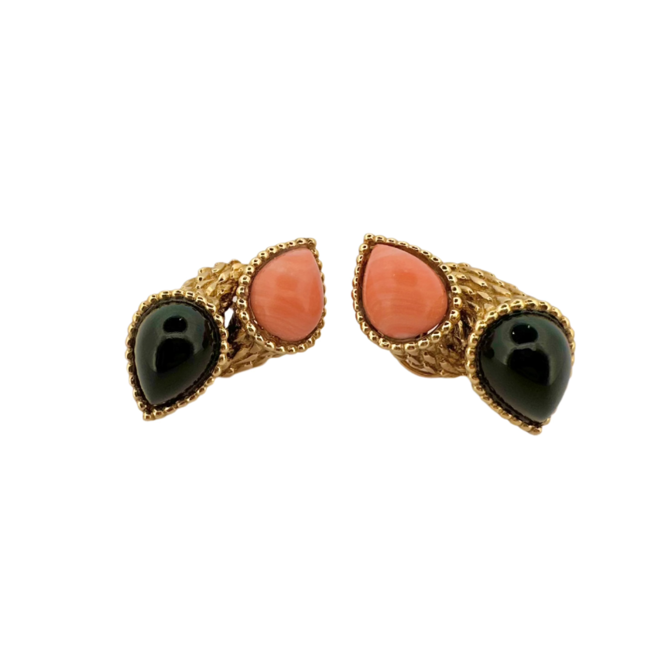 Boucles d’oreilles Clips signées de la maison BOUCHERON, modèle « Serpent Bohème », en or jaune 750/1000 (18k) ornées d’onyx et de corail.