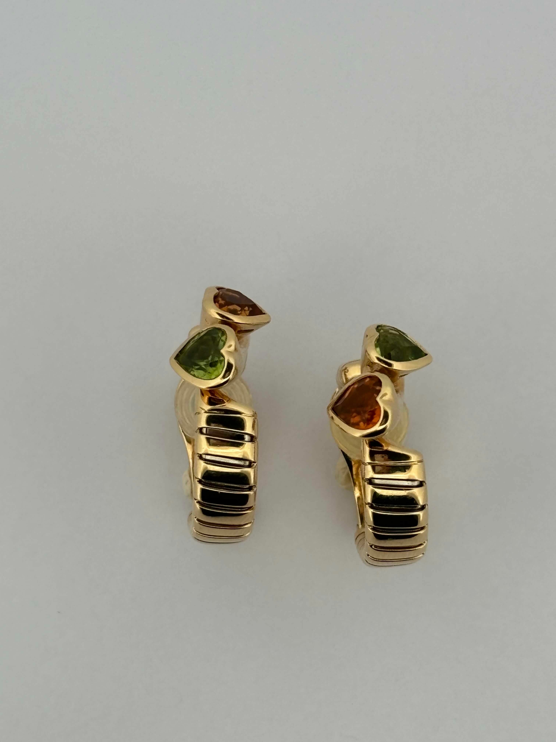 Boucles d'oreilles Maison BULGARI "Coeurs" en or jaune Péridot Citrine.        Prix sur demande – Image 2