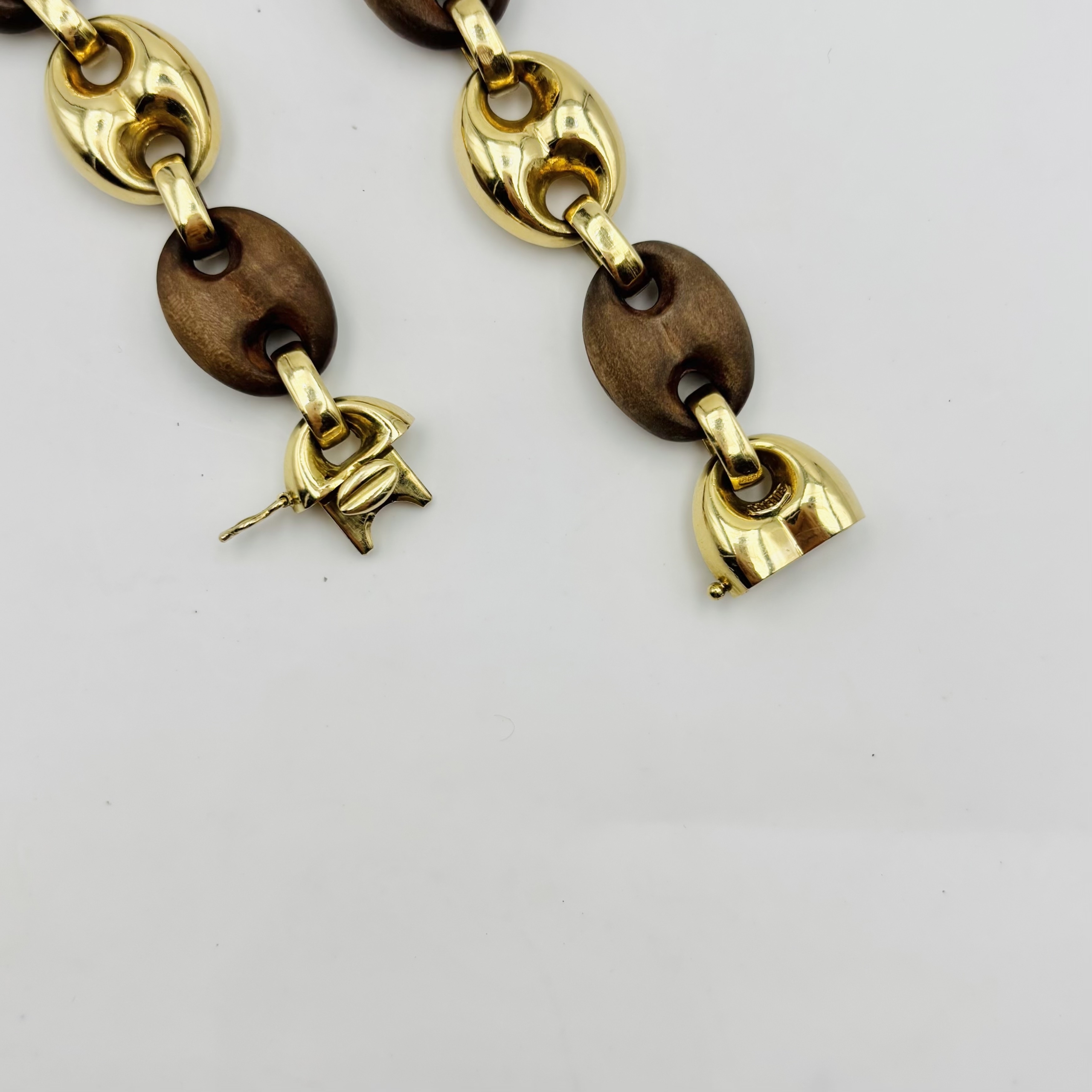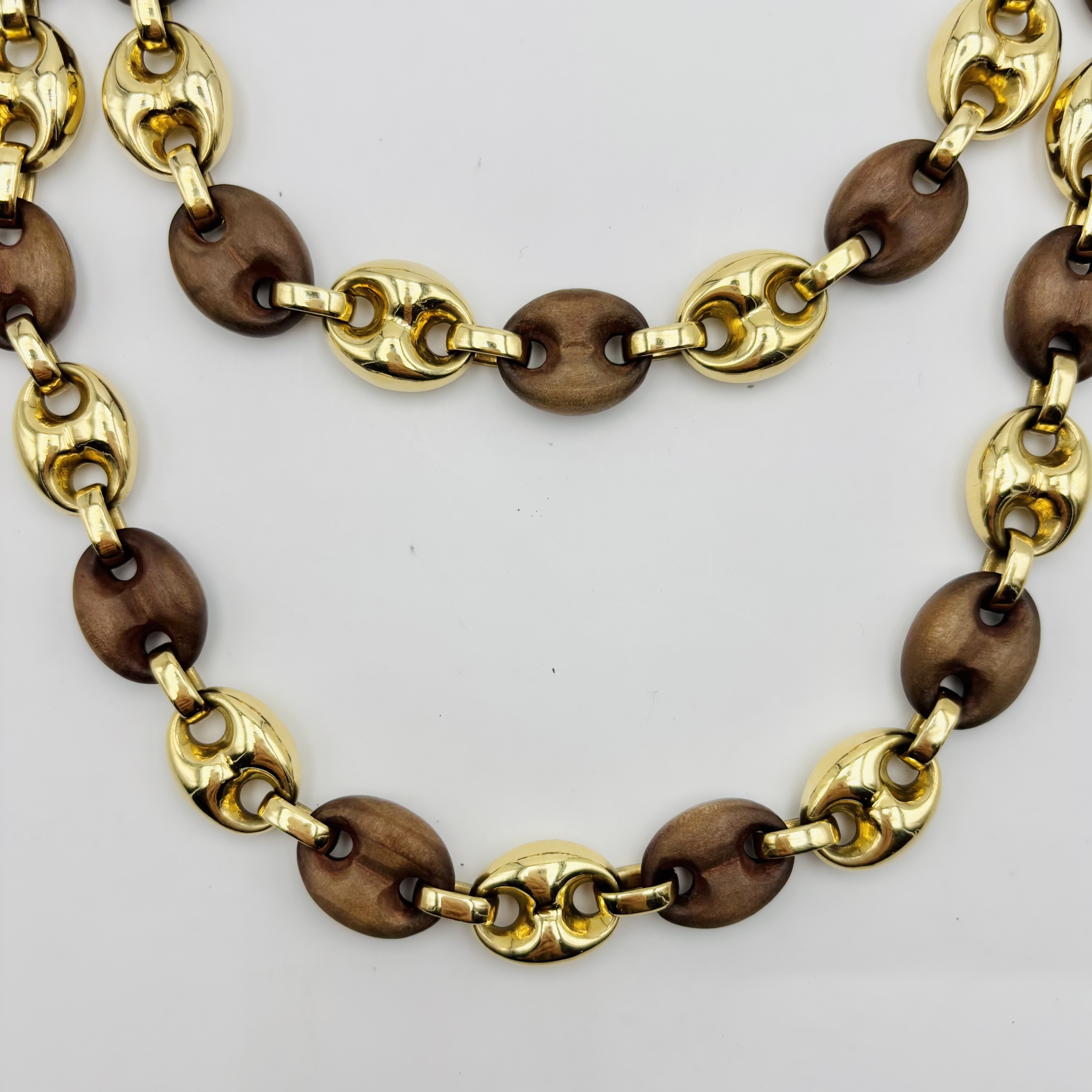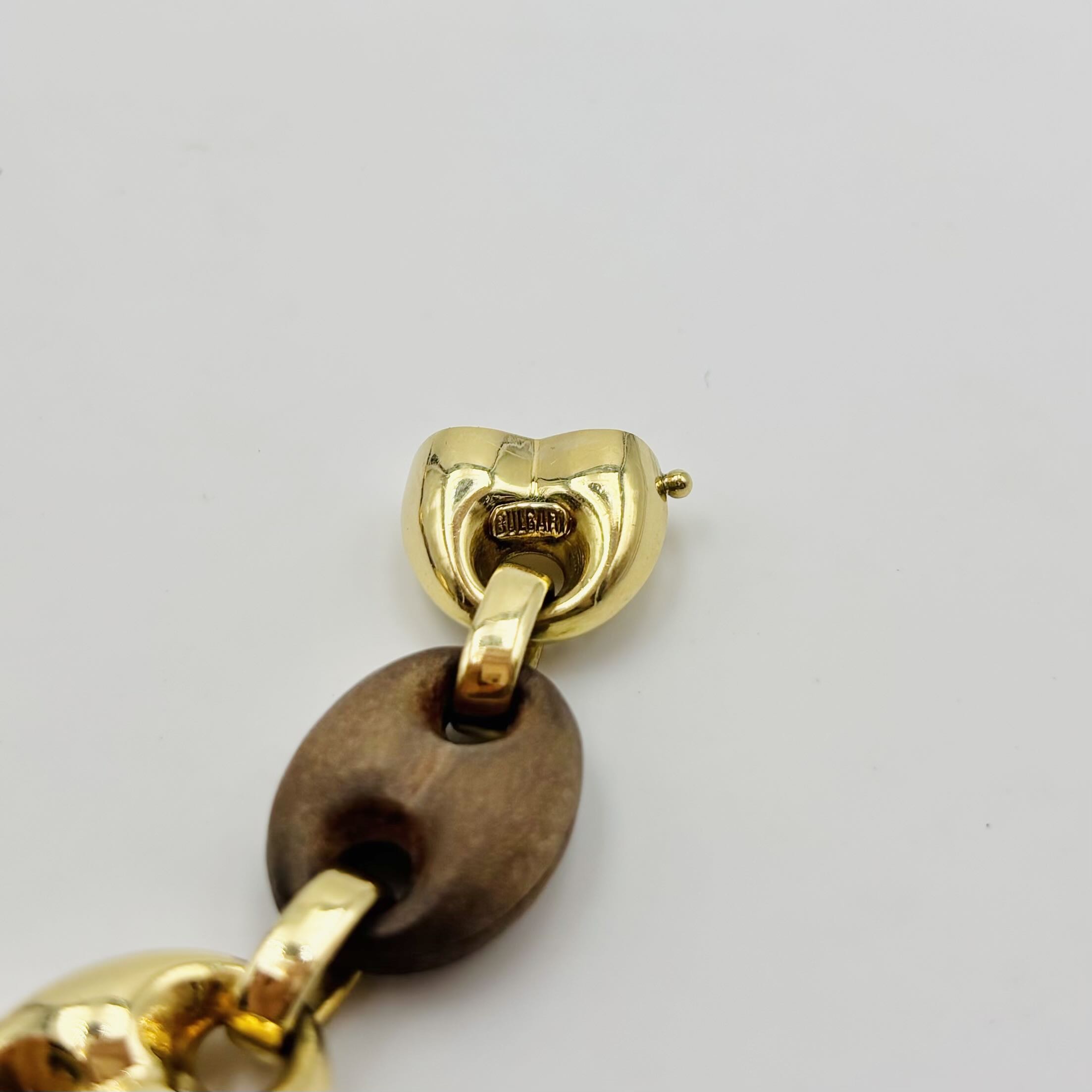 Collier de la Maison Bulgari en or jaune 750/1000 (18k) et bois, les maillons grain de café alternés.