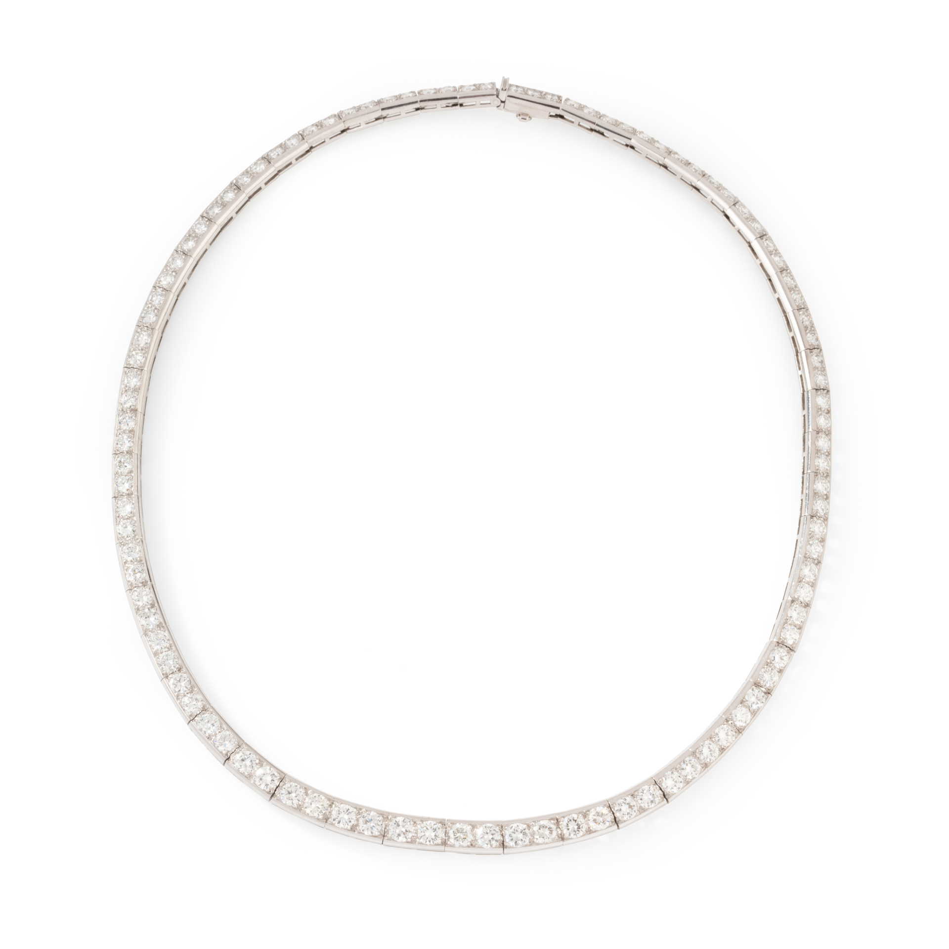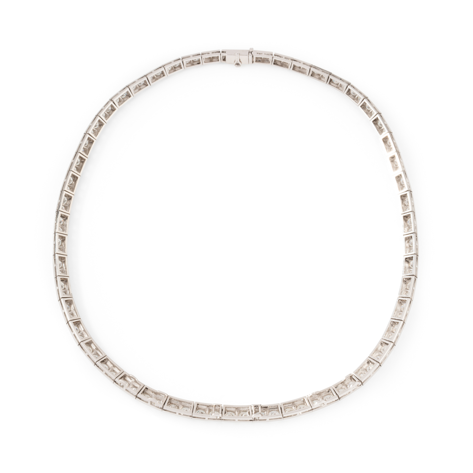 Collier ligne entièrement serti de diamants taille brillant en légère chute, monture en platine et or gris 18K ( 750/1000 )